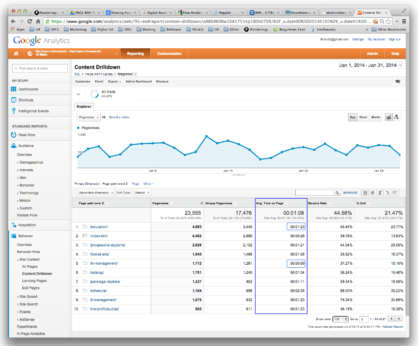 These data, when examined by the end user, help determine whether content or information architecture of the website needs to be revised (e.g. visitors are spending less time on one program page than on another – does this suggest content is more or less compelling on one page than another? See Figure 3).